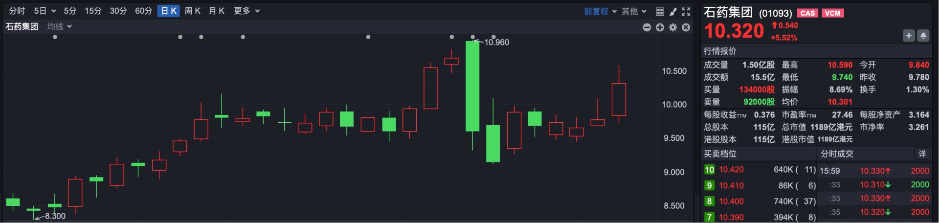 创新药概念股集体上涨,石药集团(HK01093)涨超5%,信达生物(HK01801)涨超4%,荣昌生物(HK09995)涨超3%。