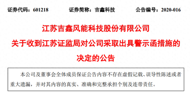 公开信息显示,吉鑫科技在2020年5月23日公告收到江苏证监局对公司采取出具警示函措施的决定,该公司在关联交易、资金占用、违规担保等方面存在信息披露违规问题。
