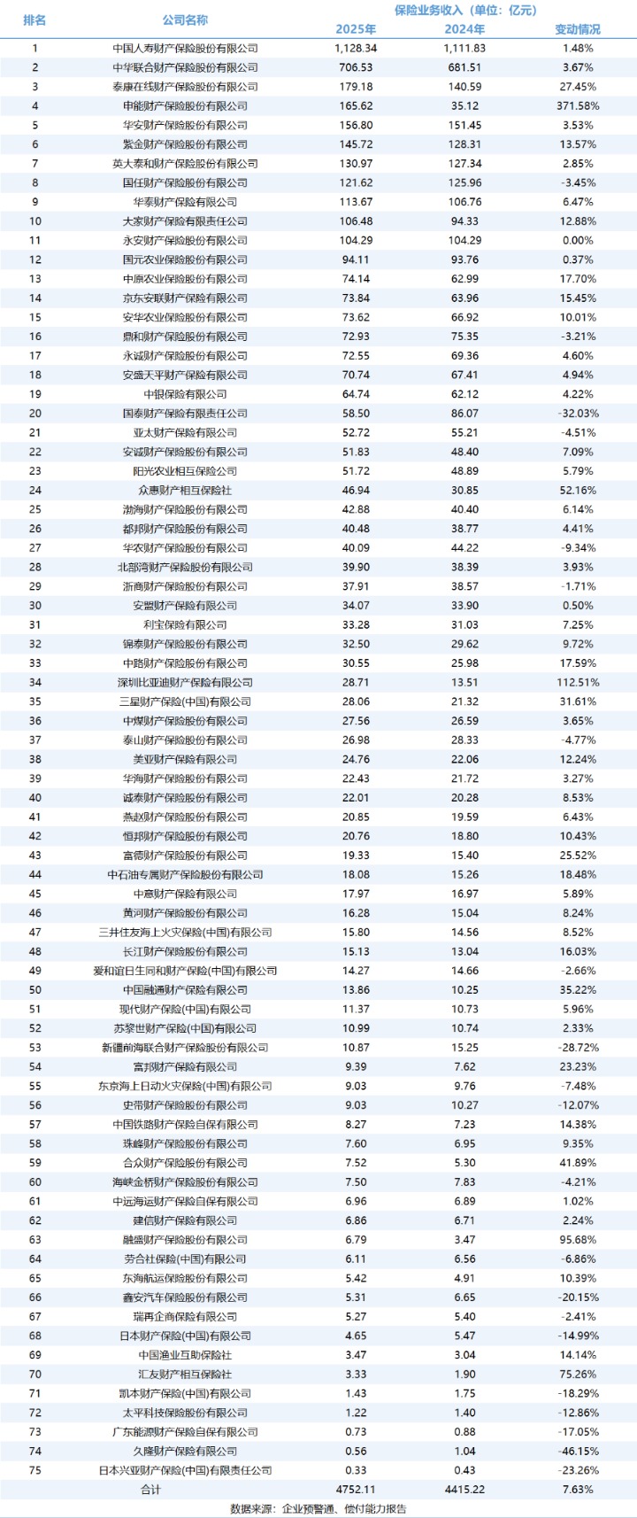 随着2025年第四季度偿付能力报告陆续披露,非上市财产险公司的全年经营图谱逐渐清晰。
