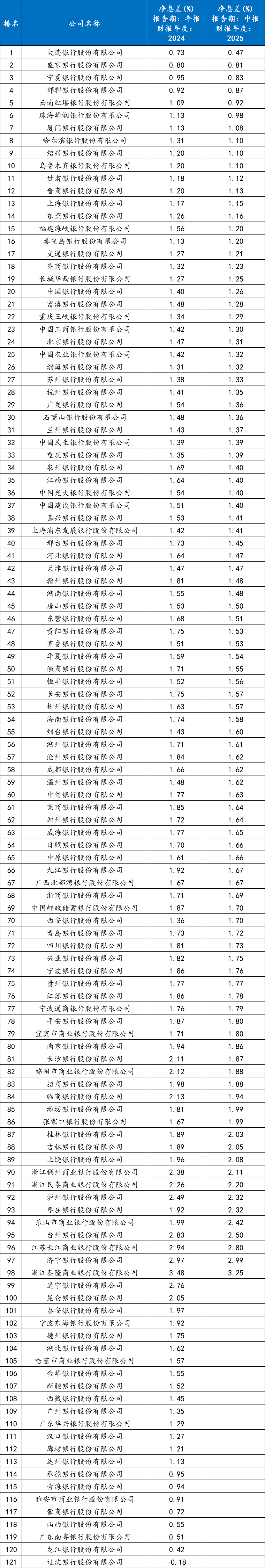 2025年商业银行净息差已降至1.42%的历史低位,其中城商行平均净息差仅1.37%。