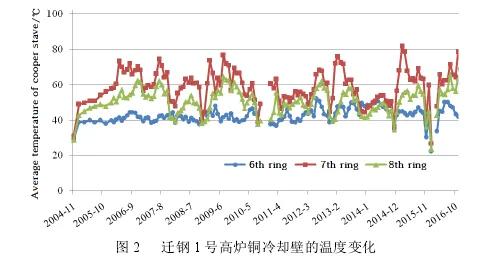 目前,迁钢1号高炉已连续运行14年8个月,2号高炉已连续运行12年5个月,3号高炉已连续运行9年5个月,均未发生铜冷却壁损坏现象,预计迁钢3座高炉铜冷却壁使用寿命有望达到一代炉龄。