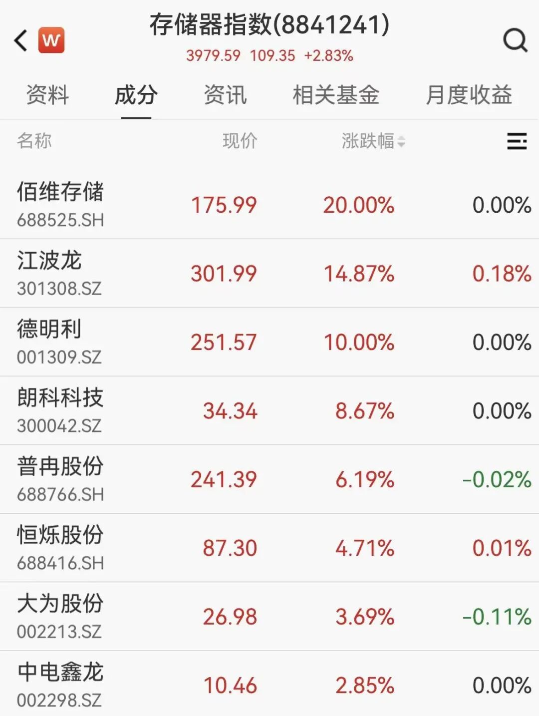 存储芯片概念逆市爆发,佰维存储涨停,江波龙涨超14%,市值超1200亿元,普冉股份、成都华微、东芯股份、澜起科技、中微半导等跟涨。