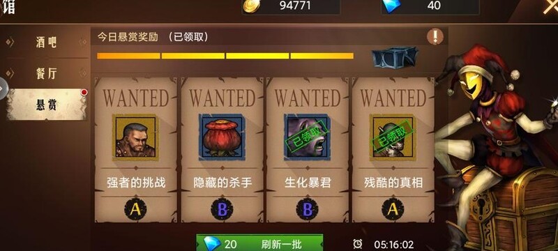 酒馆金色通缉令需完成指定事件提升星级,四个全部完成后自动刷新新任务。