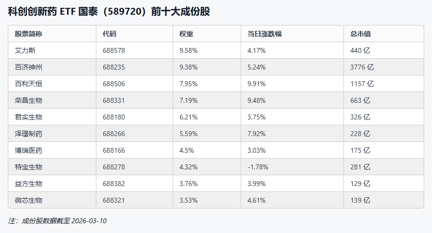 2026年政府工作报告正式发布,对生物医药产业发展作出历史性部署,报告首次将生物医药明确列为“新兴支柱产业”。在政策强催化、支付端突破、技术迭代三重共振下,20cm标的科创创新药ETF国泰(589720)大涨超4.5%。