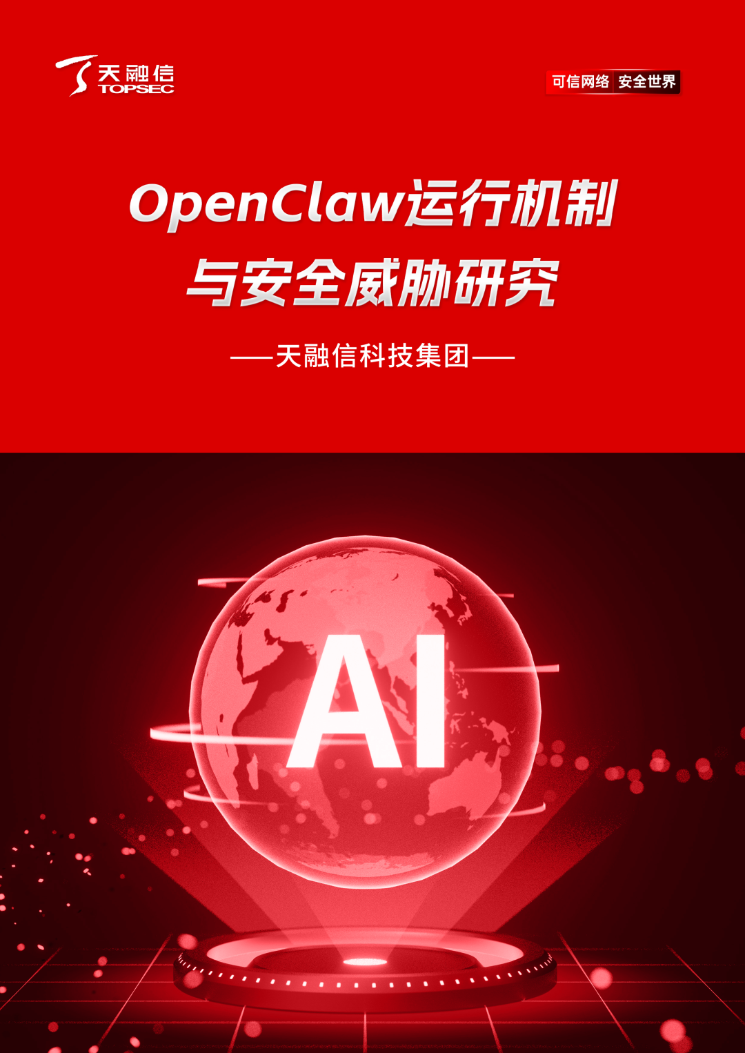 在此背景下,天融信正式发布《OpenClaw运行机制与安全威胁研究》报告,从体系结构与运行机理出发,系统梳理OpenClaw的工作流程、Skill机制与大模型交互特点,并对其已披露漏洞和系统性安全威胁进行分析,为后续防护与治理提供技术依据。