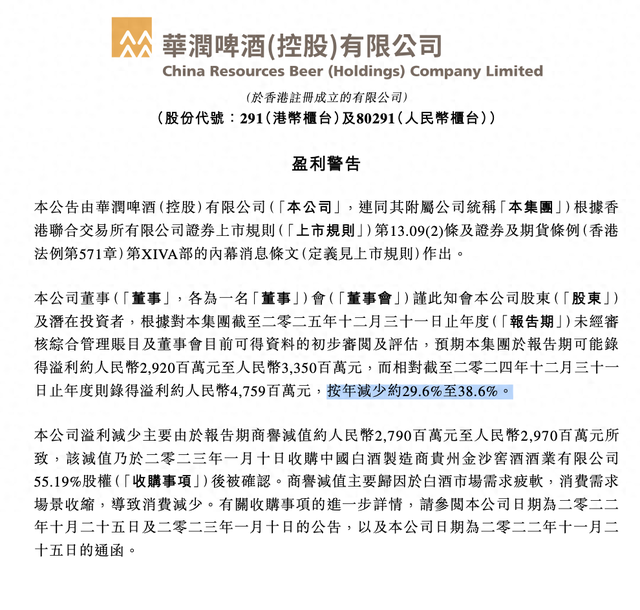 3月10日晚间,华润啤酒一纸盈警公告,引发广泛关注。