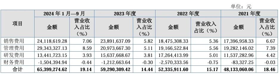报告期内,公司销售费用分别为1,739.70万元、1,847.53万元、2,389.16万元和2,411.86万元,占营业收入的比例分别为6.67%、5.36%、5.82%和7.06%。随着公司业务规模的扩大,公司销售费用也随之增长。报告期内,公司销售费用主要由市场推广费、职工薪酬和差旅费等构成。