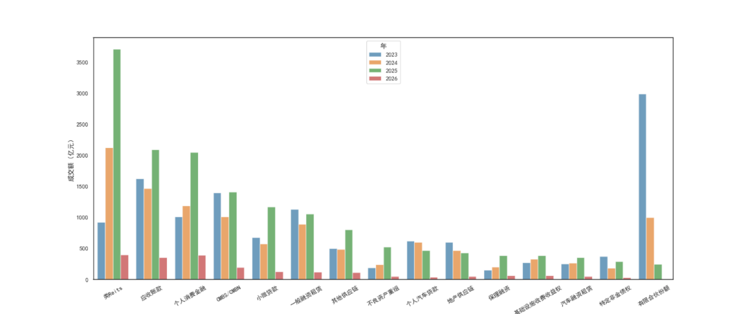 图表13:ABS年度成交累计规模(分基础资产类型)