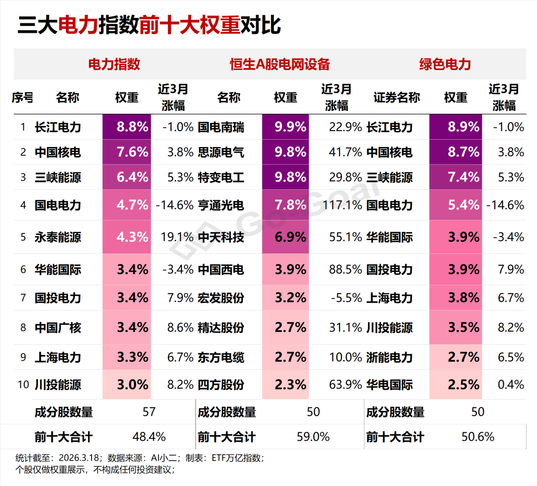 这个指数是最纯粹的发电企业集合。其成分股超过96%集中于电力行业,涵盖了长江电力、中国核电、国电电力等火、水、核、风、光各类发电巨头。