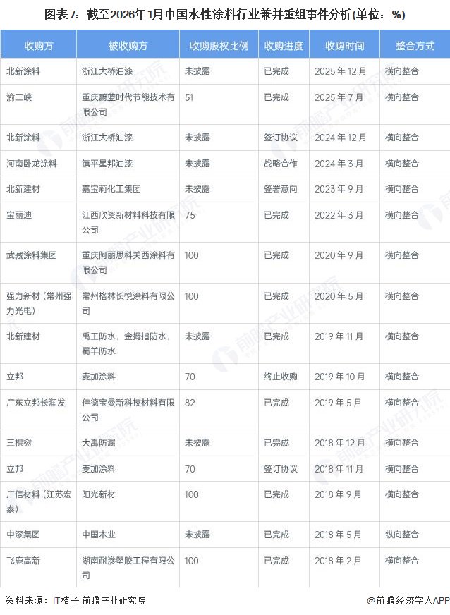 5、水性涂料企业横向收购扩大规模