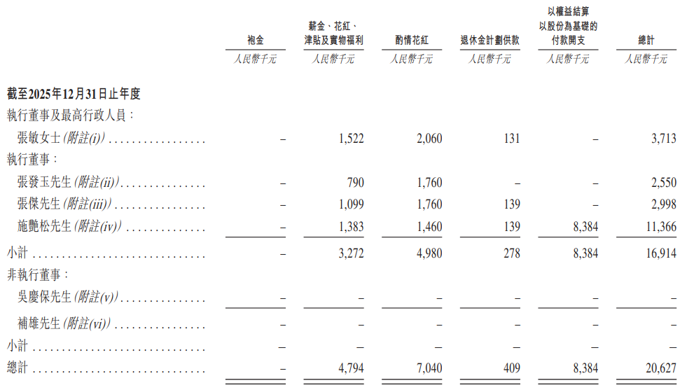 英发睿能执行董事兼总经理张敏据招股书,张发玉、张敏及张杰2025年薪酬(含薪资、津贴及花红等)分别为255.0万元、371.3万元及299.8万元。