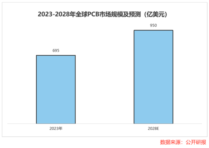 随着LPU这类先进算力架构的落地,PCB的需求量也会持续释放。预计2023到2028年,全球PCB市场规模将从695亿美元增长至950亿美元。