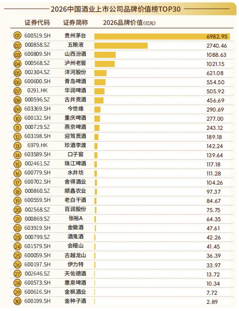 2026中国酒业上市公司品牌价值榜TOP30