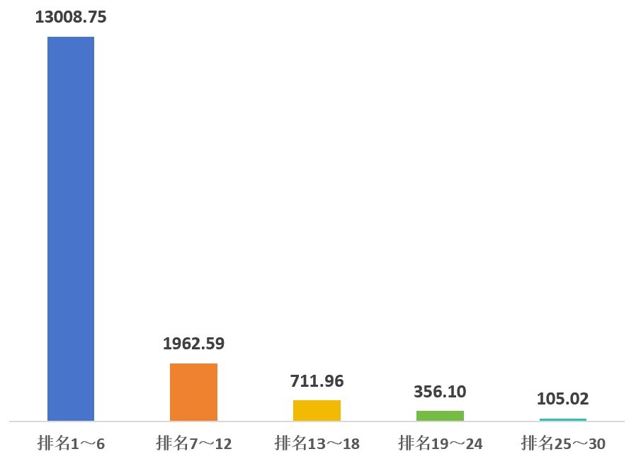 值得注意的是,上市酒企的集中度较高。数据显示,排名在前20%(第1位~第6位)的企业品牌价值合计为13009亿元,占比80.6%;其余上榜企业,合计品牌价值3135亿元,占比19.4%。