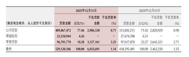 零售业务的表现成为2025年该行业绩的一大短板。年报数据显示,截至2025年末,该行零售贷款967.02亿元,同比微降0.94%,占总贷款比重降至18.28%,在公司贷款大幅增长的背景下,零售业务的增长乏力显得尤为突出。