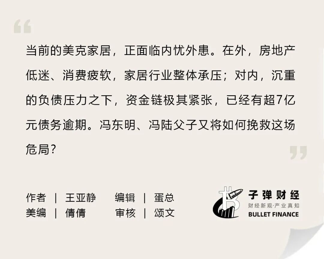 当逾期债务越滚越大,冯东明、冯陆(Mark Feng)父子又将如何挽救美克家居的危局?「子弹财经」将持续保持关注。