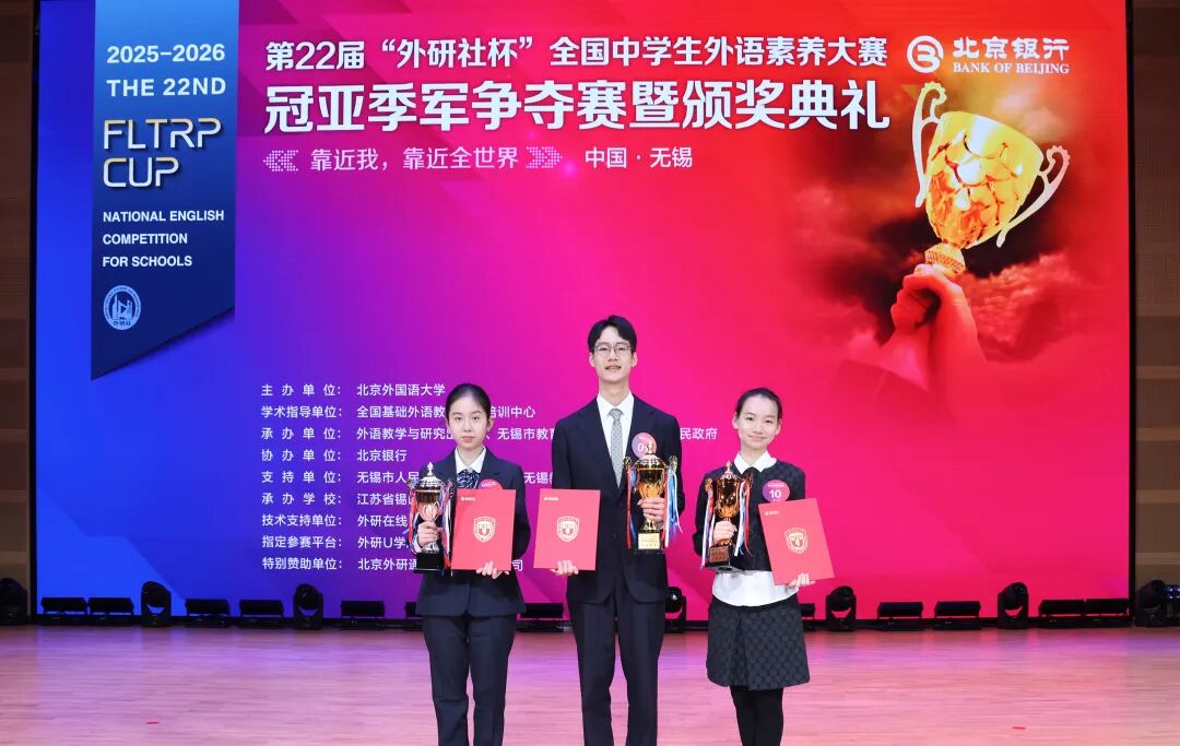 “外研社杯”全国中学生外语素养大赛是教育部公布的面向中小学生的全国性竞赛活动名单中唯一的外语类赛事。第22届“外研社杯”全国中学生外语素养大赛自2025年11月启动以来,共吸引来自全国各地的148万名高中生参与。本届大赛全国总决赛由北京外国语大学主办,外语教学与研究出版社、市教育局、惠山区人民政府承办,以全面培养学生的核心素养为理念,设置了主线清晰、内容多元的赛事体系,突出学术权威性与活动丰富性,旨在帮助学生成长为热爱学习、勇于挑战、真正具备国际竞争力的优秀人才。今后,该赛事将长期落户无锡,成为我市的教育赛事品牌。