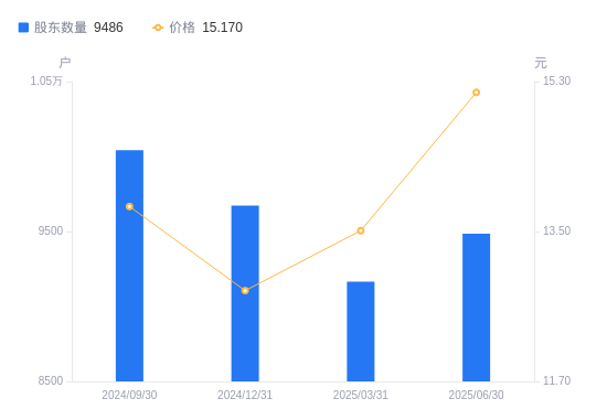 近一年(2024年6月30日至2025年6月30日),明冠新材A股股东户数从1.07万户,减低至9486户,降幅11.67%,区间股价上涨42.44%。