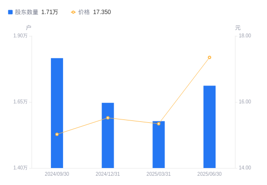 近一年(2024年6月30日至2025年6月30日),新疆火炬A股股东户数从1.9万户,减低至1.71万户,降幅9.77%,区间股价上涨34.50%。