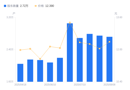 近一年(2024年9月30日至2025年7月31日),华锋股份A股股东户数从2.74万户,增加至2.75万户,增幅0.41%,区间股价上涨25.39%。