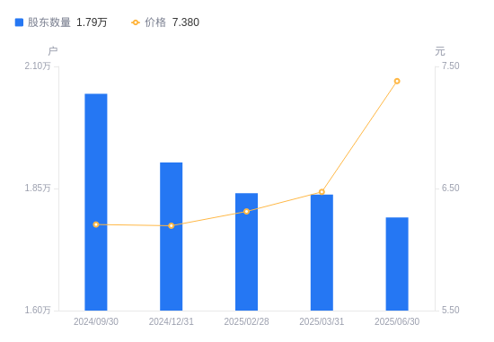 8月22日消息,数据显示,截至2025年6月30日,黄山胶囊A股股东总户数为1.79万户,较上期(2025年3月31日)减少472户,降幅2.57%。公司最新A股总股本为2.99亿股,其中流通A股2.9亿股,户均持有流通A股数量为1.62万股,较上期增加416.01股,增幅2.64%;户均持流通A股市值11.95万元,较上期增加1.74万元,增幅17.04%。