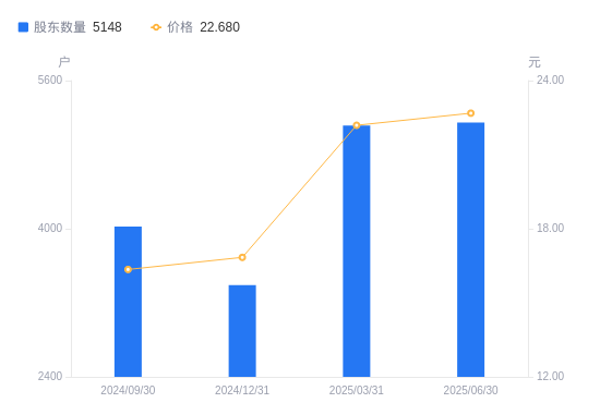 近一年(2024年6月30日至2025年6月30日),正弦电气A股股东户数从4080户,增加至5148户,增幅26.18%,区间股价上涨60.85%。