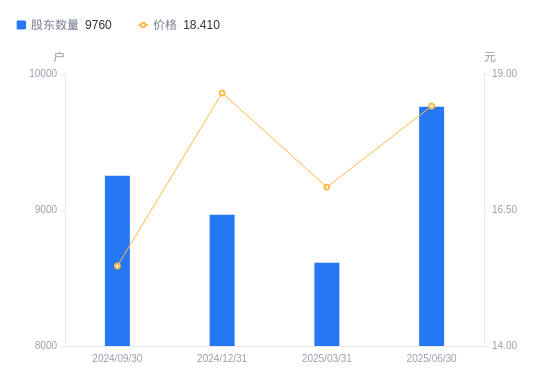 近一年(2024年6月30日至2025年6月30日),大庆华科A股股东户数从9081户,增加至9760户,增幅7.48%,区间股价上涨46.69%。