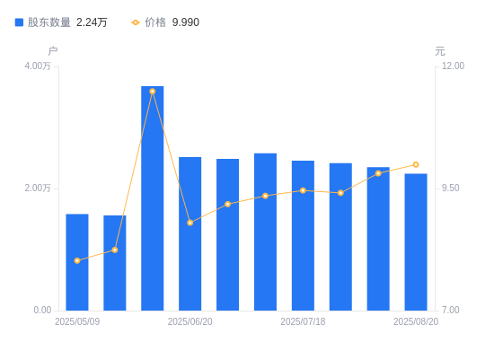 近一年(2024年8月20日至2025年8月20日),汇金通A股股东户数从1.75万户,增加至2.24万户,增幅27.99%,区间股价上涨50.84%。