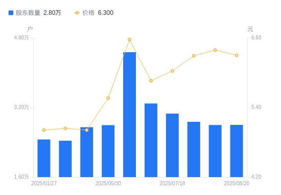 近一年(2024年8月20日至2025年8月20日),长青股份A股股东户数从2.53万户,增加至2.8万户,增幅10.81%,区间股价上涨41.89%。