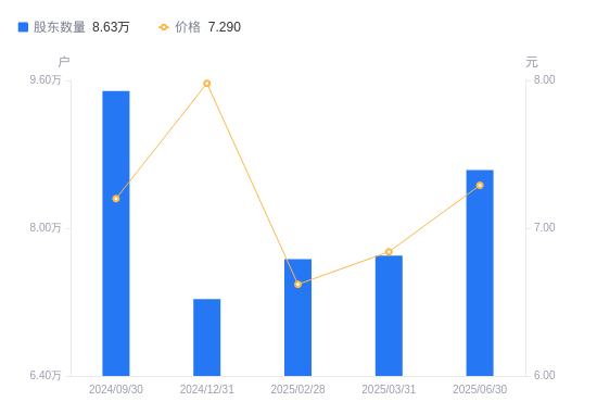 近一年(2024年6月30日至2025年6月30日),航天机电A股股东户数从7.82万户,增加至8.63万户,增幅10.36%,区间股价上涨61.28%。