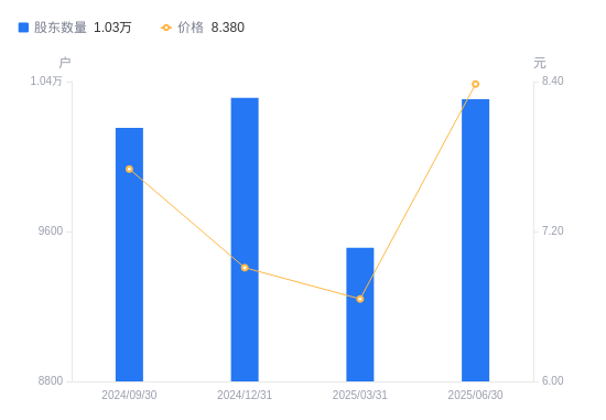8月25日消息,数据显示,截至2025年6月30日,康鹏科技A股股东总户数为1.03万户,较上期(2025年3月31日)增加793户,增幅8.34%。公司最新A股总股本为5.19亿股,其中流通A股2.55亿股,户均持有流通A股数量为2.47万股,较上期减少2062.37股,降幅7.69%;户均持流通A股市值20.73万元,较上期增加2.88万元,增幅16.14%。
