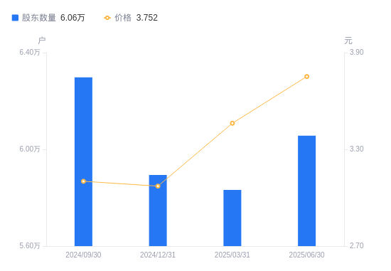 近一年(2024年6月30日至2025年6月30日),尚荣医疗A股股东户数从6.37万户,减低至6.06万户,降幅4.99%,区间股价上涨61.58%。