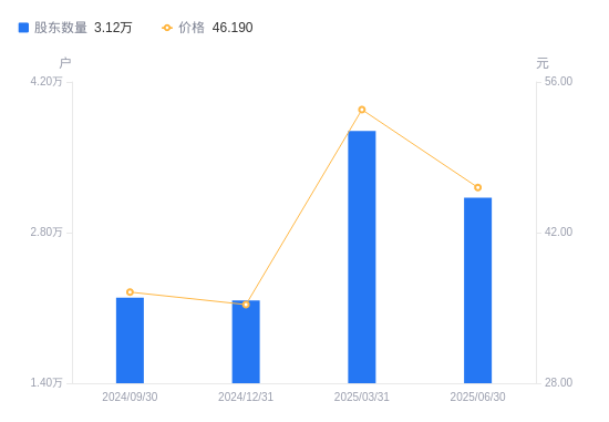近一年(2024年6月30日至2025年6月30日),铜牛信息A股股东户数从2.13万户,增加至3.12万户,增幅46.93%,区间股价上涨86.02%。