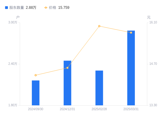 近一年(2024年6月30日至2025年6月30日),金自天正A股股东户数从2.34万户,增加至2.42万户,增幅3.45%,区间股价上涨20.86%。