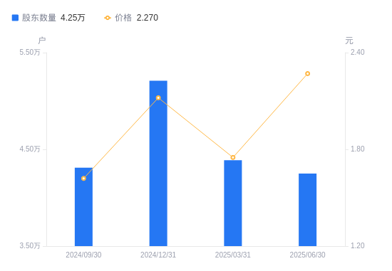 近一年(2024年6月30日至2025年6月30日),华远控股A股股东户数从4.12万户,增加至4.25万户,增幅3.06%,区间股价上涨95.69%。