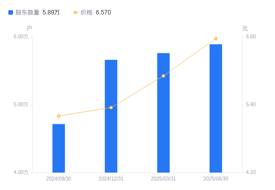 近一年(2024年6月30日至2025年6月30日),宏昌电子A股股东户数从5.4万户,增加至5.89万户,增幅9.19%,区间股价上涨40.69%。