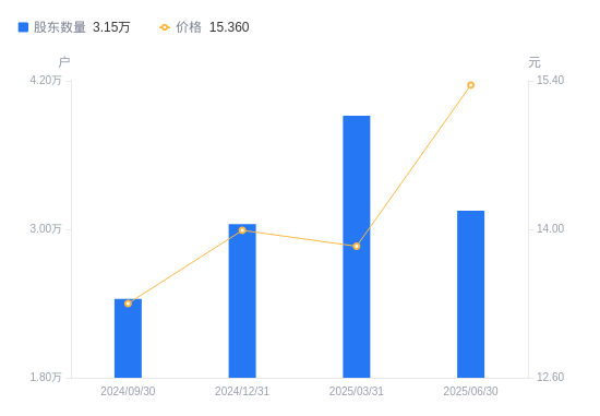 近一年(2024年6月30日至2025年6月30日),瀛通通讯A股股东户数从2.2万户,增加至3.15万户,增幅43.11%,区间股价上涨45.04%。