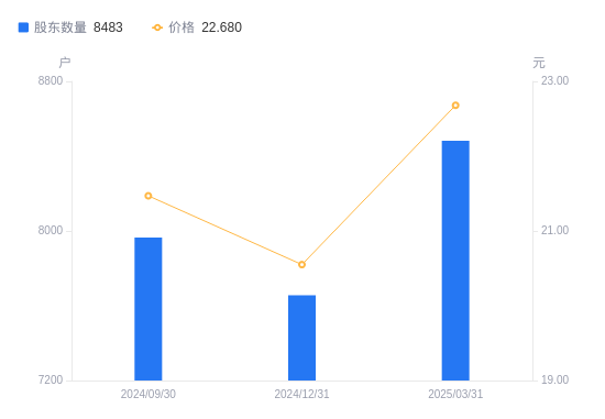 8月26日消息,数据显示,截至2025年6月30日,联盛化学A股股东总户数为8697户,较上期(2025年3月31日)增加214户,增幅2.52%。公司最新A股总股本为1.08亿股,其中流通A股9375万股,户均持有流通A股数量为1.08万股,较上期增加7596.74股,增幅238.68%;户均持流通A股市值28.53万元,较上期增加21.31万元,增幅295.27%。