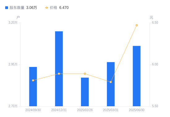 近一年(2024年6月30日至2025年6月30日),嘉欣丝绸A股股东户数从3.14万户,减低至3.06万户,降幅2.49%,区间股价上涨29.66%。