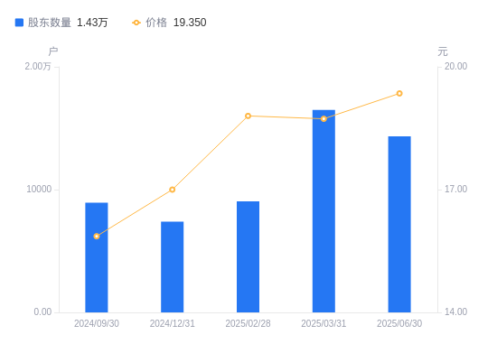 近一年(2024年6月30日至2025年6月30日),凤形股份A股股东户数从8579户,增加至1.43万户,增幅67.20%,区间股价上涨47.69%。