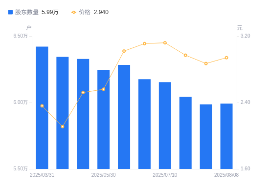 8月26日消息,数据显示,截至2025年6月30日,ST英飞拓(维权)A股股东总户数为6.18万户,较上期(2025年6月20日)减少1074户,降幅1.71%。公司最新A股总股本为11.99亿股,其中流通A股10.5亿股,户均持有流通A股数量为1.7万股,较上期增加290.55股,增幅1.74%;户均持流通A股市值5.29万元,较上期增加2407.28元,增幅4.77%。