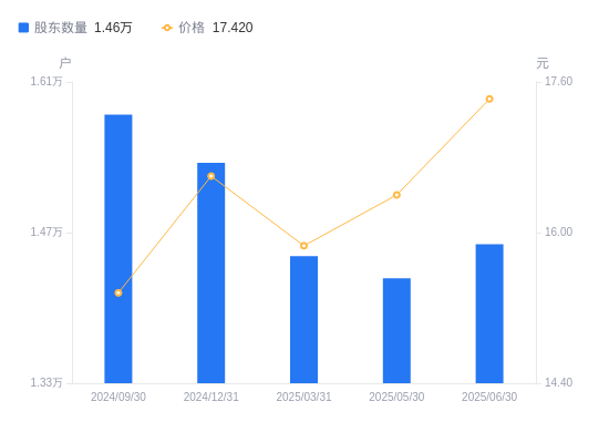 8月26日消息,数据显示,截至2025年6月30日,风光股份A股股东总户数为1.46万户,较上期(2025年5月30日)增加317户,增幅2.22%。公司最新A股总股本为2亿股,其中流通A股5000万股,户均持有流通A股数量为3426.3股,较上期减少76.08股,降幅2.17%;户均持流通A股市值5.97万元,较上期增加2247.09元,增幅3.91%。