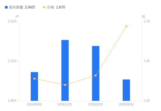 近一年(2024年6月30日至2025年6月30日),ST中珠A股股东户数从2.05万户,减低至2.04万户,降幅0.48%,区间股价上涨38.02%。