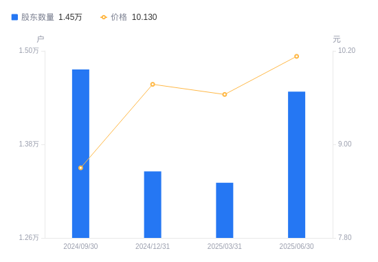 8月27日消息,数据显示,截至2025年6月30日,卫信康A股股东总户数为1.45万户,较上期(2025年3月31日)增加1170户,增幅8.79%。公司最新A股总股本为4.35亿股,其中流通A股4.35亿股,户均持有流通A股数量为3.01万股,较上期减少2642.5股,降幅8.08%;户均持流通A股市值30.45万元,较上期减少1.08万元,降幅3.42%。