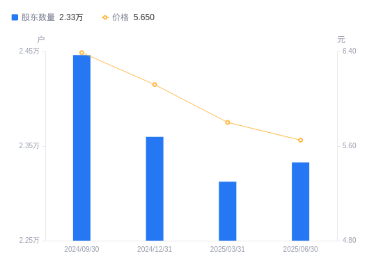 近一年(2024年6月30日至2025年6月30日),风神股份A股股东户数从2.53万户,减低至2.33万户,降幅7.86%,区间股价下跌0.53%。