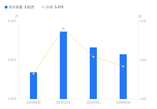 近一年(2024年6月30日至2025年6月30日),昇兴股份A股股东户数从2.35万户,增加至3.01万户,增幅28.00%,区间股价上涨12.55%。