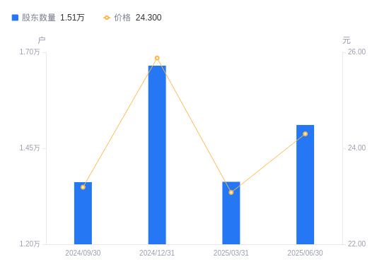近一年(2024年6月30日至2025年6月30日),凡拓数创A股股东户数从1.51万户,减低至1.51万户,降幅0.22%,区间股价上涨19.41%。