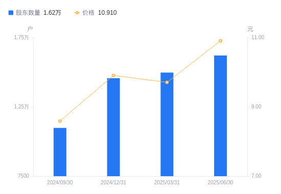 近一年(2024年6月30日至2025年6月30日),慧智微A股股东户数从1.12万户,增加至1.62万户,增幅44.14%,区间股价上涨28.50%。