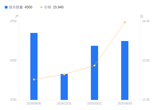 近一年(2024年6月30日至2025年6月30日),富淼科技A股股东户数从4895户,减低至4500户,降幅8.07%,区间股价上涨39.70%。