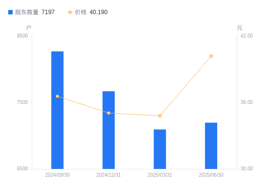 8月28日消息,数据显示,截至2025年6月30日,科瑞思A股股东总户数为7197户,较上期(2025年3月31日)增加104户,增幅1.47%。公司最新A股总股本为5525万股,其中流通A股1625万股,户均持有流通A股数量为2257.89股,较上期减少33.11股,降幅1.45%;户均持流通A股市值9.07万元,较上期增加1.1万元,增幅13.82%。
